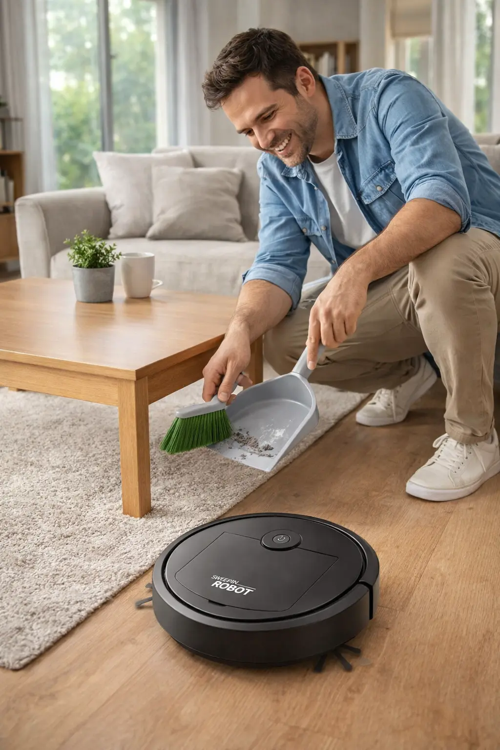 Su perfil bajo le permite deslizarse debajo de sillones, camas y muebles, alcanzando esas zonas donde una escoba o aspiradora tradicional no llega.